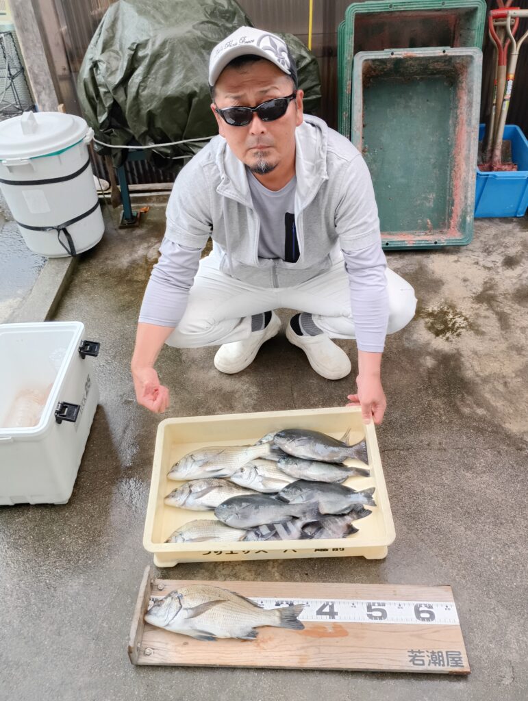 魚種 :チヌ   30~35㎝     6匹 グレ   25~28㎝     4匹 サンバソウ   25㎝